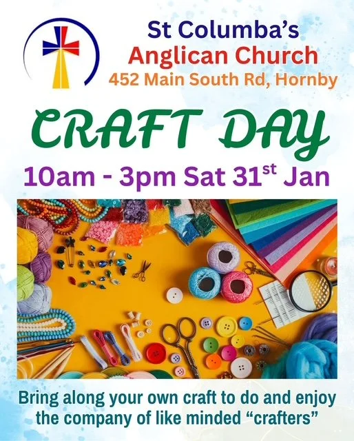 Saturday 31 January 2026, St Columba’s Church Hall, 10am-3pm.