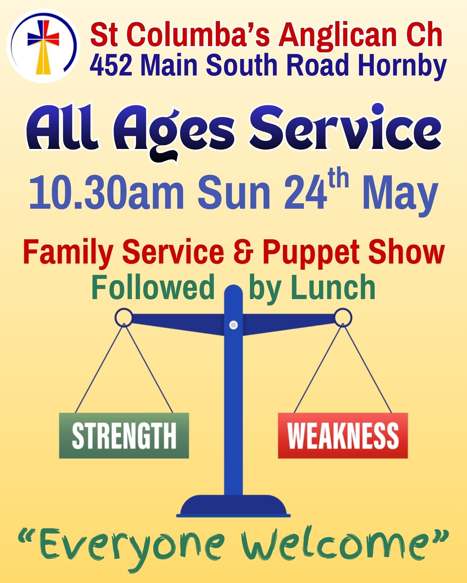 24 May 2026 at 10.30am. All Age Service with shared lunch to follow at St Columba’s, Hornby.